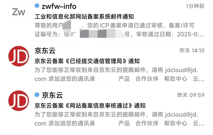 备案相信博友们以及经常建站的朋友都知道的,这个备案是非常折磨人的,天天审核这个,审核那个,我这个备案甚至连京东云官方电话都没给我打过,直接过了初审